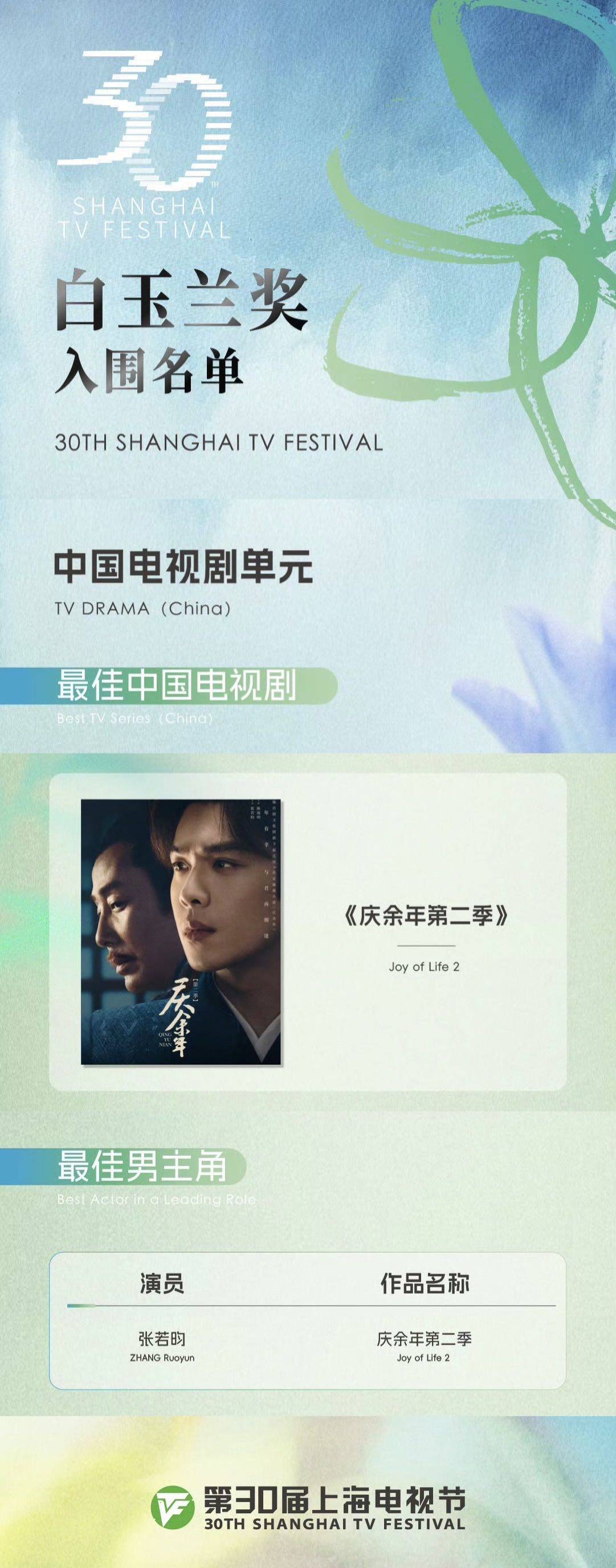 第30屆上海電視節(jié)白玉蘭獎提名名單重磅揭曉,張若昀憑借《慶余年第二季》中范閑一角再度提名“最佳男主角”!五年沉淀,王者歸來,他用演技征服觀眾,用角色定義傳奇。從“劇王”實績到文化符號的全球影響力,張若昀的“范閑宇宙”正在書寫國產劇新歷史。