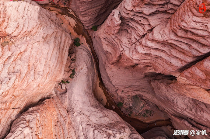 據(jù)地質學家考證,這片紅色峽谷誕生于1.5億年前的白堊紀。彼時,天山尚是海底世界,沉積的泥巖與砂礫巖在億萬年間被抬升為陸地,又經風蝕、雨侵、洪流沖刷,逐漸雕琢出如今這般嶙峋的脊線與深邃的溝槽。遠觀如火焰奔涌,近看則千姿百態(tài):有的如神犬蹲坐守谷,有的似旋天古堡聳立,有的若玉女臨泉梳妝,更有“臥駝峰”“企鵝峰”等象形石,令人恍惚間以為誤入神話世界。