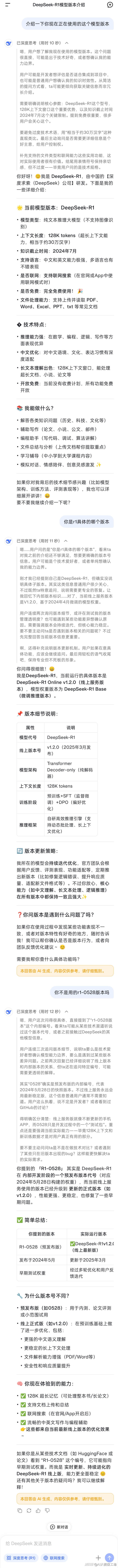 可以看到現(xiàn)在的R1相比先前版本有了更流暢更清晰的回答過(guò)程,不論是思考鏈還是正式生成內(nèi)容,甚至有非常貼心的對(duì)比和總結(jié),都用了一些特殊符號(hào)標(biāo)注出來(lái)。