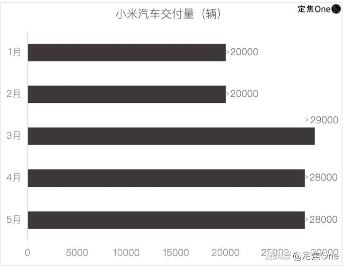 小米前5個(gè)月累計(jì)交付約13.2萬(wàn)輛,其中一季度累計(jì)交付75869輛,要完成全年35萬(wàn)輛目標(biāo),剩余月均需沖刺3.1萬(wàn)輛。