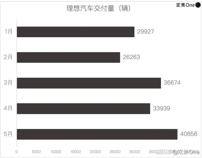 理想汽車5月交付40856輛,同比增長(zhǎng)16.7%、環(huán)比增長(zhǎng)20.4%,在新勢(shì)力中排名第二。