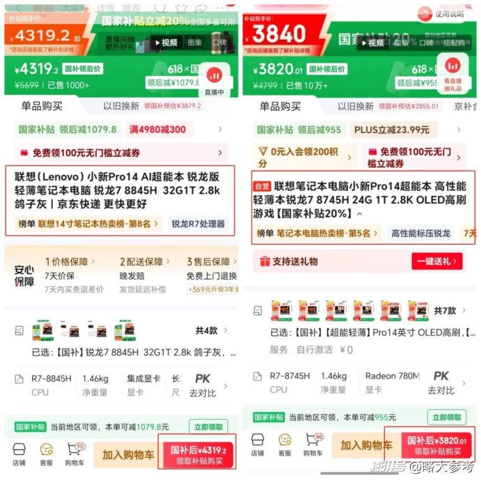 對這類用戶來說,聯(lián)想PC的真實吸引力是性價比:二者差價本就不大,通常在百元至千元不等——2024年發(fā)售的拯救者Y9000P,在硬件配置相同的情況下,AI元啟版的價格僅比普通版高200元,如經(jīng)教育特惠與濟南、西安等地區(qū)以舊換新政策的階梯式補貼,二者差價將會更小。