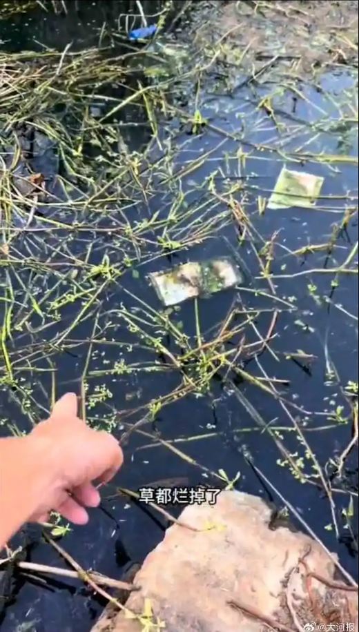“漁獵齊哥”在6月9日發(fā)布視頻表示,7日中午,為了驗(yàn)證河溝中的水有沒(méi)有問(wèn)題,他在沫河口鎮(zhèn)一小塊玉米地做了實(shí)驗(yàn),分別用疑似被污染的水以及干凈水分別澆灌幾棵玉米苗,想過(guò)幾天再對(duì)比看看結(jié)果。9日下午,當(dāng)他再次回到這塊玉米地時(shí)發(fā)現(xiàn),用疑似被污染的水澆過(guò)的玉米苗已經(jīng)枯黃。