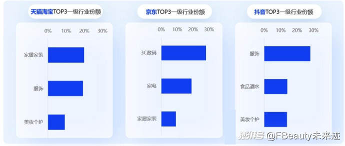 值得關(guān)注的是,復(fù)旦消費大數(shù)據(jù)實驗室還披露一項數(shù)據(jù),即天貓?zhí)詫?、京東、抖音的銷售額前三行業(yè)中,美妝個護(hù)同時位列天貓?zhí)詫毰c抖音平臺的第三大行業(yè)。