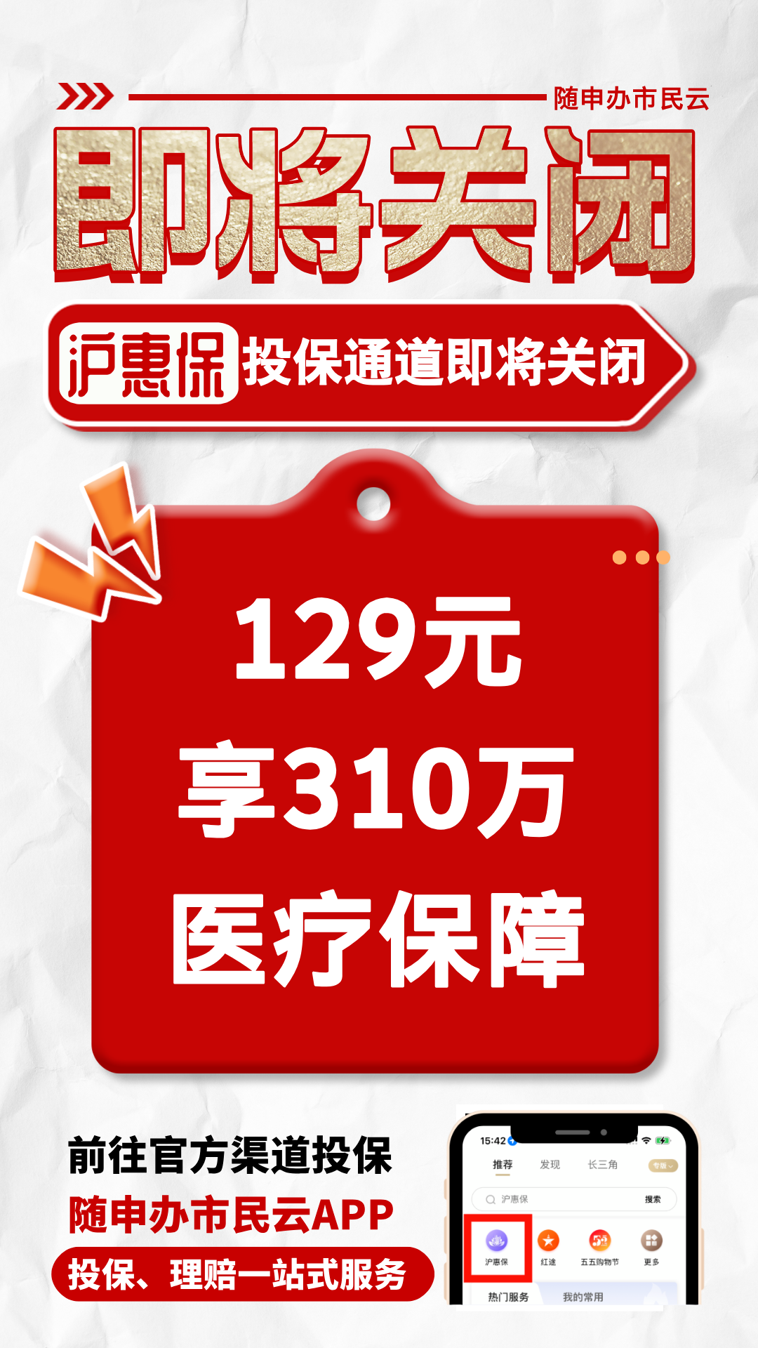 上海市民注意了!2025版“滬惠?!焙汀皽荼?特定疾病保險(xiǎn)”投保現(xiàn)已進(jìn)入倒計(jì)時(shí)!有投保意愿的市民請(qǐng)抓緊時(shí)間,趕快登錄官方投保通道“隨申辦市民云”APP辦理投保!保單自7月1日起生效,保障期至2026年6月30日。錯(cuò)過(guò)不支持補(bǔ)繳!錯(cuò)過(guò)還要等一年!