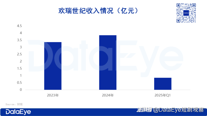 根據(jù)歡瑞世紀(jì) 2025 年 Q1 財報數(shù)據(jù),公司營業(yè)收入達(dá) 8554.80 萬元,同比增長 19.07%,這一增長主要得益于微短劇等新興業(yè)務(wù)營收的大幅攀升。而在2024年,公司全年收入達(dá)3.85億元,同比增長14.60%。