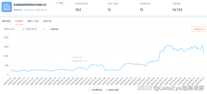 DataEye-ADX數(shù)據(jù)顯示,其全資子公司天津星鏈視界信息技術(shù)有限公司今年素材投放量持續(xù)攀升,單日投放量從年初百余組激增至 1500 多組,從側(cè)面印證了市場推廣的高強(qiáng)度投入。盡管短期銷售費(fèi)用承壓,但隨著市場滲透率提升,這部分投入有望轉(zhuǎn)化為長期營收增長點(diǎn)。