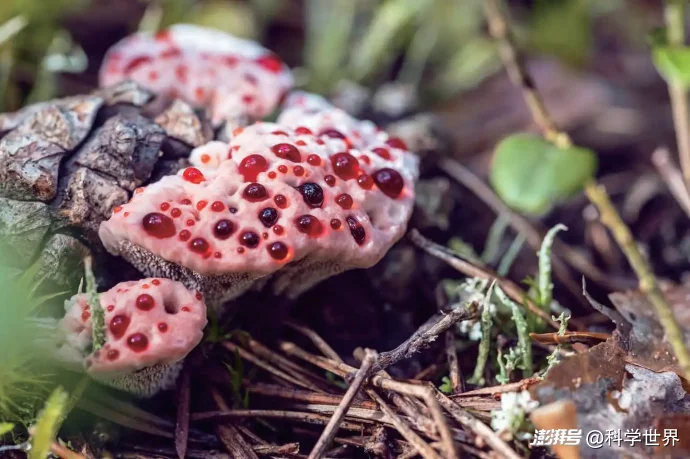 這種流淌像血一樣紅色液體的真菌屬于亞齒菌屬。它們的菌蓋形態(tài)多變,直徑通常在4~10厘米,有時甚至能長到20厘米。