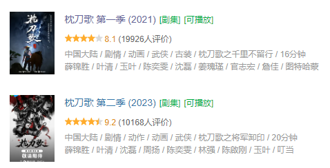 作為原創(chuàng)武俠動畫番劇,《枕刀歌》系列前兩季的播出效果頗佳。