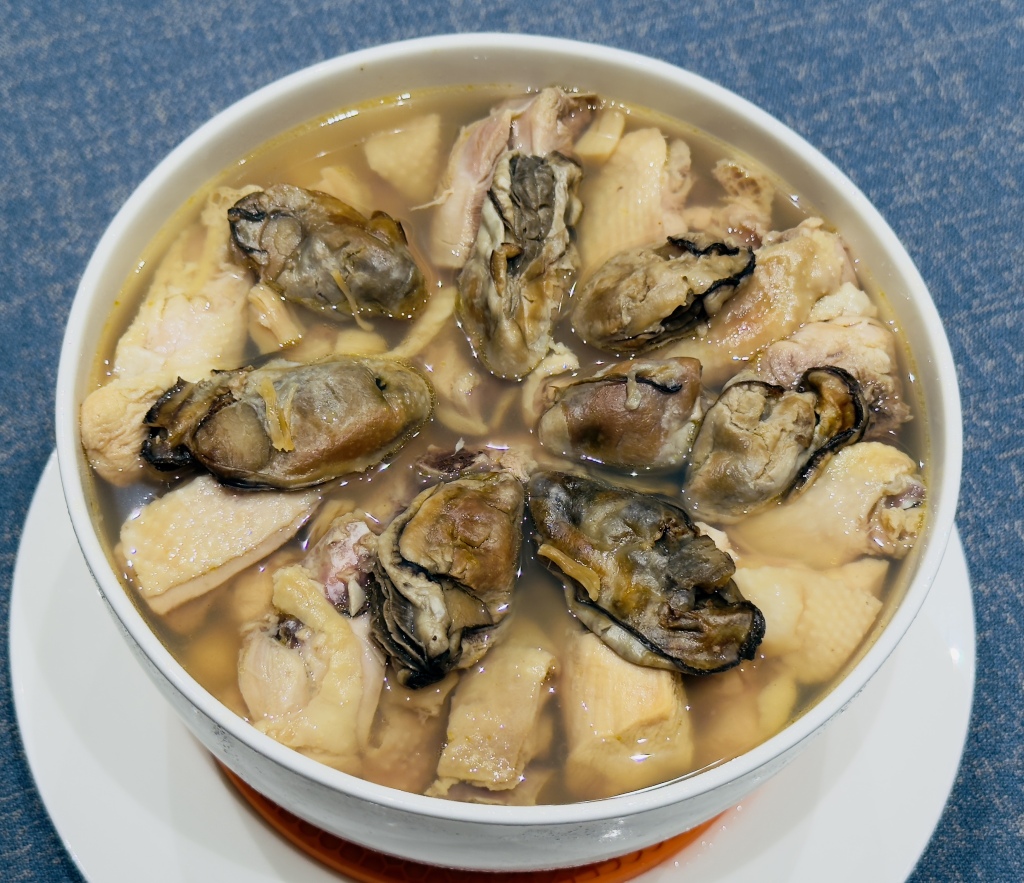 勞老板介紹,他在香港海鮮市場采購這種來自日本北海道生曬鮮蠔,3L超大規(guī)格,迅速冷凍,確保品質(zhì)優(yōu)良。煲湯之前解凍,然后在烤箱里逼去一部分水分,激發(fā)蠔的鮮香氣息,無需蔥結(jié)姜塊,小火燉足六小時(shí),以本味取勝。每人一枚,有蠔干的原香,無鮮生蠔常有的腥味,海鮮與家禽的同舟共濟(jì),呈現(xiàn)出一種古雅的味道。