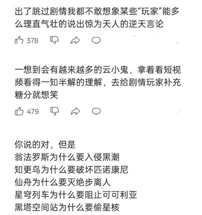 有玩家指出:“跳過功能會催生‘云玩家’,他們僅憑角色強度抽卡,卻對劇情背景一無所知,社區(qū)討論將失去深度。”