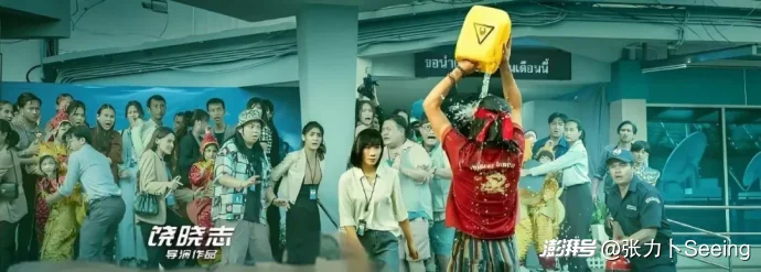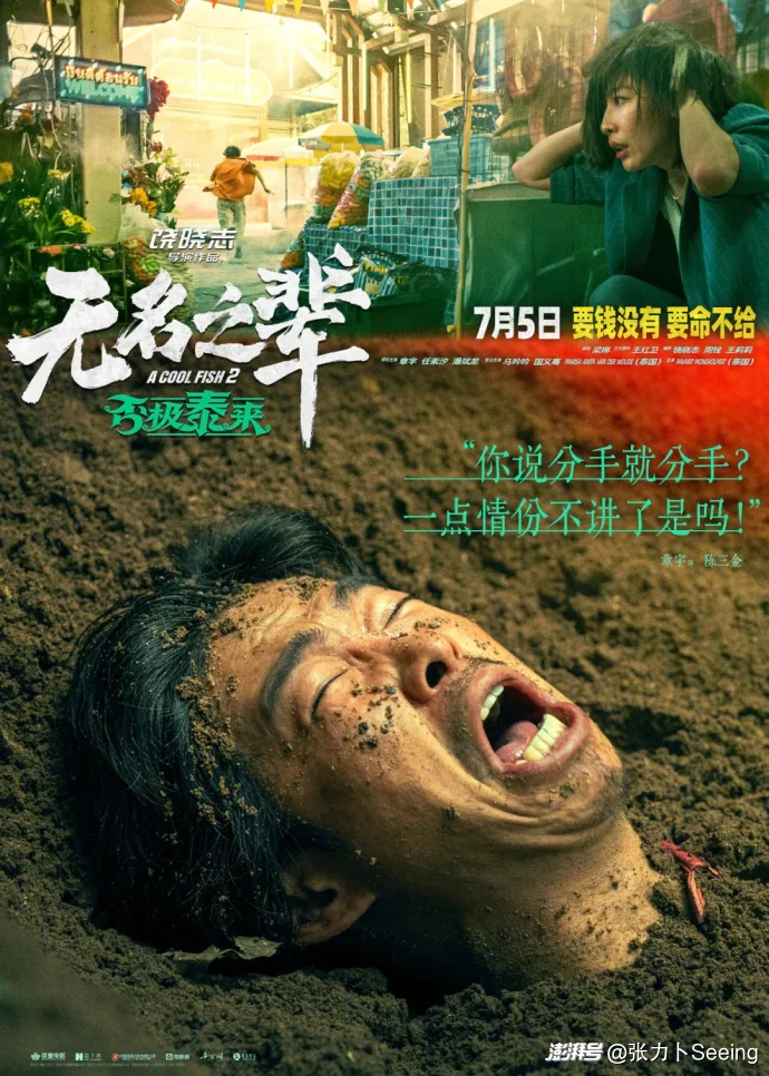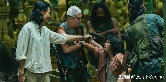 《無名之輩:否極泰來》的表層敘事圍繞一場“分手引發(fā)的蝴蝶效應(yīng)”展開:義烏小老板陳三金在曼谷街頭與女友薛芳梅激烈爭執(zhí)時,意外闖入犯罪集團的綁架現(xiàn)場,二人連同其他人質(zhì)被脅迫參與一場名為“生死抉擇”的直播真人秀。當(dāng)觀眾實時投票決定人質(zhì)的去留,而幕后黑手竟是薛芳梅的前雇主、某直播平臺總裁。這種“戲中戲”結(jié)構(gòu)顛覆了傳統(tǒng)犯罪片的線性邏輯,“饒曉志把整部電影變成了一個巨大的元敘事實驗,觀眾既是旁觀者,又是無意識的共謀者”。
