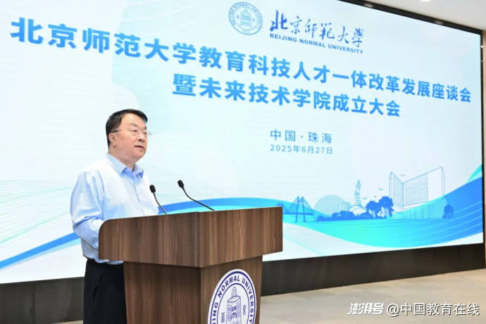 6月27日,北京師范大學(xué)教育科技人才一體改革發(fā)展座談會(huì)暨未來(lái)技術(shù)學(xué)院成立大會(huì)在珠海校區(qū)舉行。當(dāng)天,北師大未來(lái)技術(shù)學(xué)院揭牌成立,由中國(guó)工程院院士余剛擔(dān)任未來(lái)技術(shù)學(xué)院院長(zhǎng)。該學(xué)院成立,標(biāo)志著北師大在工科學(xué)科和交叉學(xué)科建設(shè)方面邁出重要的一步。