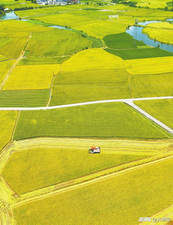 7月3日,湖南省衡陽市衡山縣白果鎮(zhèn),村民駕駛收割機(jī)在收割早稻。仲夏時節(jié),該縣種植的早稻次第成熟進(jìn)入收割季,當(dāng)?shù)卮迕駬屪デ绾锰鞖馐崭钤绲?,確保顆粒歸倉。曹正平 夏建軍 攝