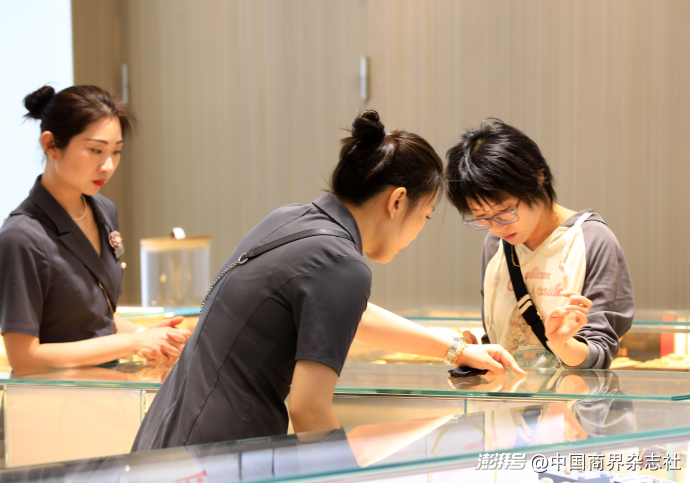 圖為消費者在江蘇淮安一家金店選購黃金產(chǎn)品。(圖片由CNSPHOTO提供)