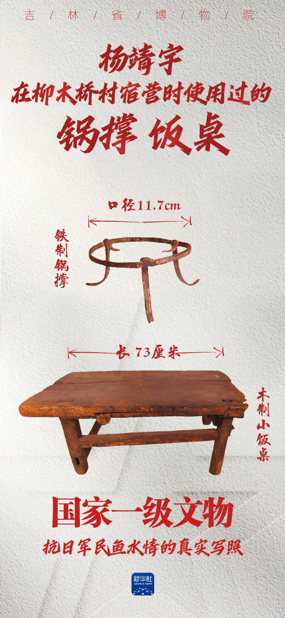 1938年,楊靖宇帶領(lǐng)部隊(duì)在柳木橋山區(qū)進(jìn)行抗日活動(dòng)時(shí),他的通訊員向當(dāng)?shù)卮迕駟未竽锝枇诉@些生活用具。部隊(duì)轉(zhuǎn)移時(shí),把物件歸還給單大娘。后來(lái)日偽軍得知此事,氣急敗壞地?zé)龤Я肆緲虼宓姆课?,但楊靖宇曾使用過(guò)的這幾個(gè)物件卻被搶救保存下來(lái)。它們不僅記錄了抗聯(lián)將士的戰(zhàn)斗歷程,也展現(xiàn)了東北民眾對(duì)抗聯(lián)的支持與軍民魚水情深。