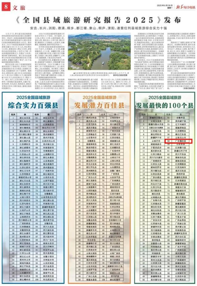 2025全國(guó)縣域旅游發(fā)展最快的100個(gè)縣,