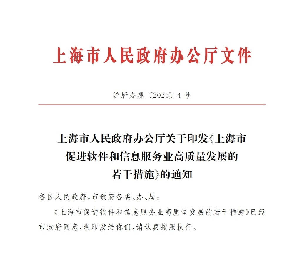 近日,上海市人民政府辦公廳印發(fā)《上海市促進(jìn)軟件和信息服務(wù)業(yè)高質(zhì)量發(fā)展的若干措施》。