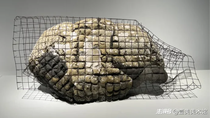 張一楊、黃瀾越、林村、陳煒博,《畫(huà)石》,陶、金屬,50X150X120cm,2024。