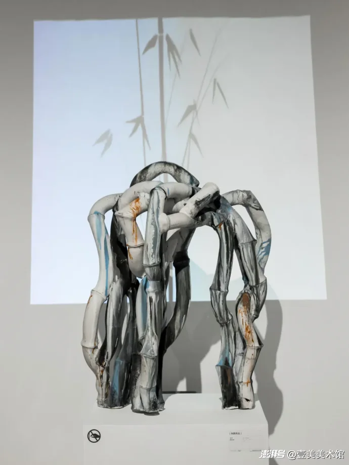 技術(shù)的進(jìn)步也正在改變?nèi)藗儗?duì)自然的態(tài)度。當(dāng)面對(duì)與我們息息相關(guān)的自然時(shí),藝術(shù)家變得更加主動(dòng)和富有創(chuàng)造力,對(duì)自然議題的討論與生態(tài)的反思貫穿多件作品?!陡∮呜R像》通過(guò)陶瓷與工業(yè)廢料構(gòu)建生態(tài)與工業(yè)的對(duì)話(huà)空間,探討資本擴(kuò)張與環(huán)境反噬;《洄游》以數(shù)字化建模描繪魚(yú)的生命軌跡,探討自然消亡與工業(yè)重生的辯證關(guān)系;《綠水青山》結(jié)合陶瓷與燈光技術(shù),展現(xiàn)人類(lèi)技藝與自然生態(tài)的詩(shī)意融合?!断蜿?yáng)而生》通過(guò)交互陶藝傳遞生命向上的力量;《山影》結(jié)合數(shù)字技術(shù)與傳統(tǒng)工藝表現(xiàn)江南煙雨之美;《山語(yǔ)》突破青釉傳統(tǒng)限制,傳遞自然與生命的哲學(xué)思考。
