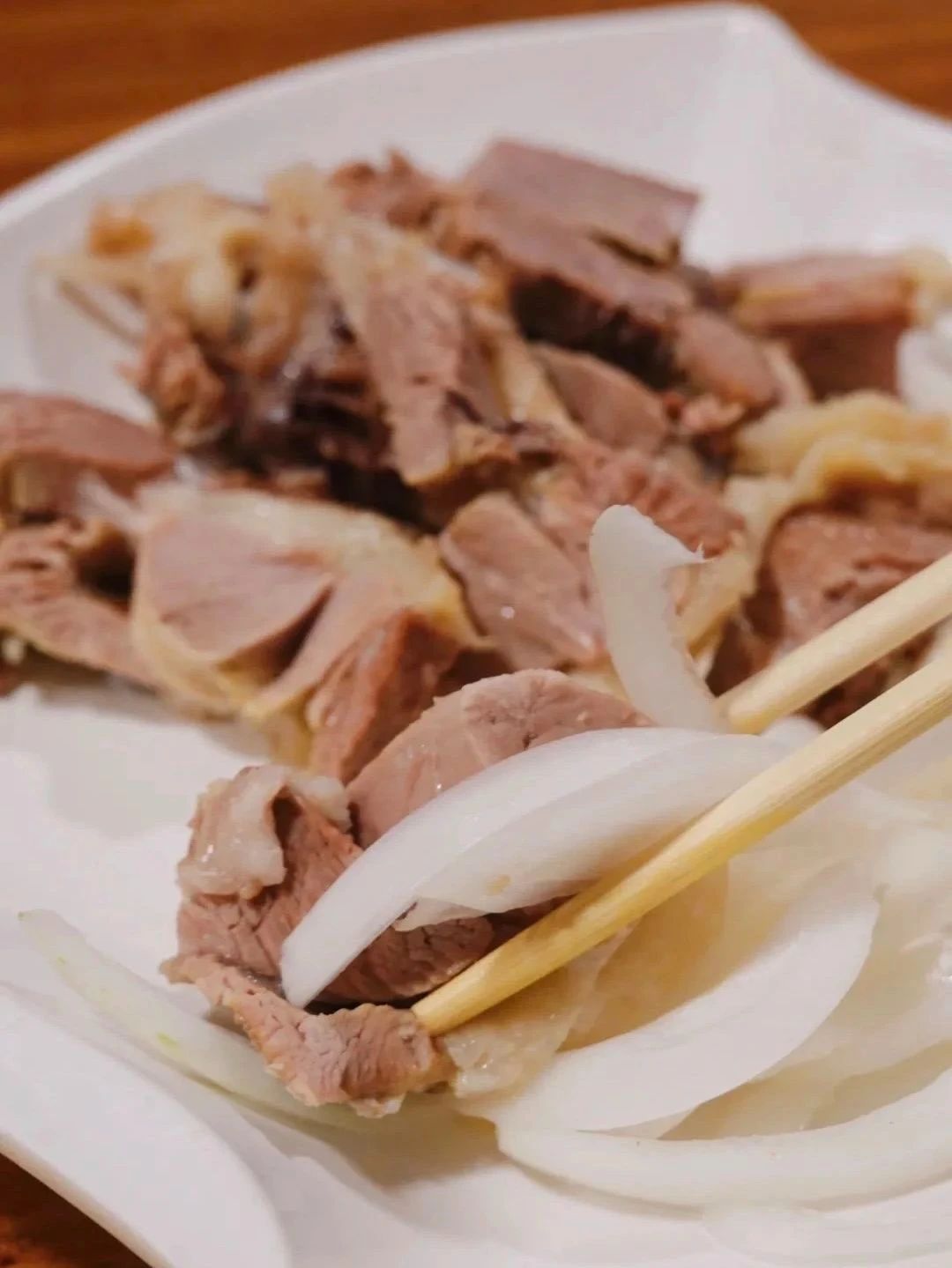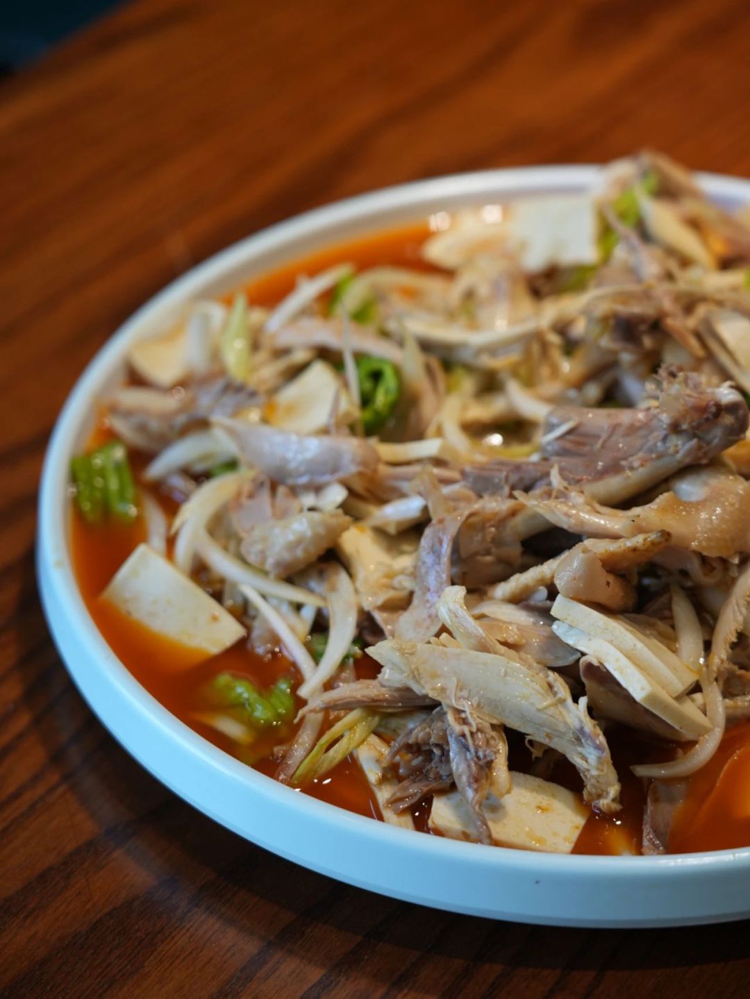 只見老板利索地撕好雞,放入生洋蔥和辣椒,再澆上秘制椒麻汁一拌。吸飽椒汁的肉絲,入口時鮮香麻辣齊聚舌尖,吃到第二口,感覺腦仁有點兒嗡嗡聲。