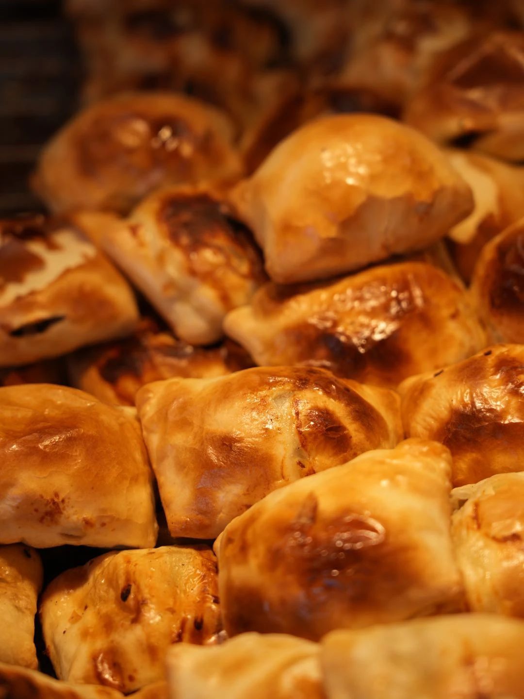 烤包子的形態(tài)也不止一種。比如,和田的烤包子圓如滿月,拳頭大的尺寸一個頂飽,烏魯木齊的烤包子則利落成方印,棱角分明的酥皮裹緊肉塊……