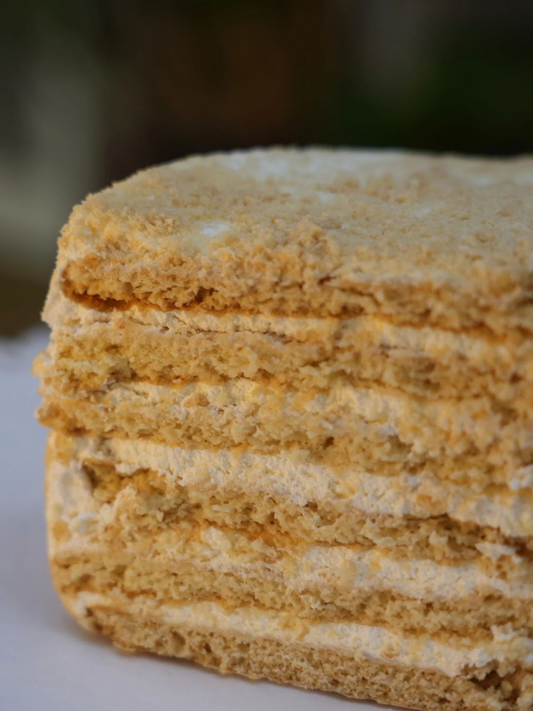 我很推薦塔塔爾千層奶油蛋糕。六層用蜂蜜、雞蛋、酥油做成的面皮,疊著六層奶油,入口是有克制的甜度。