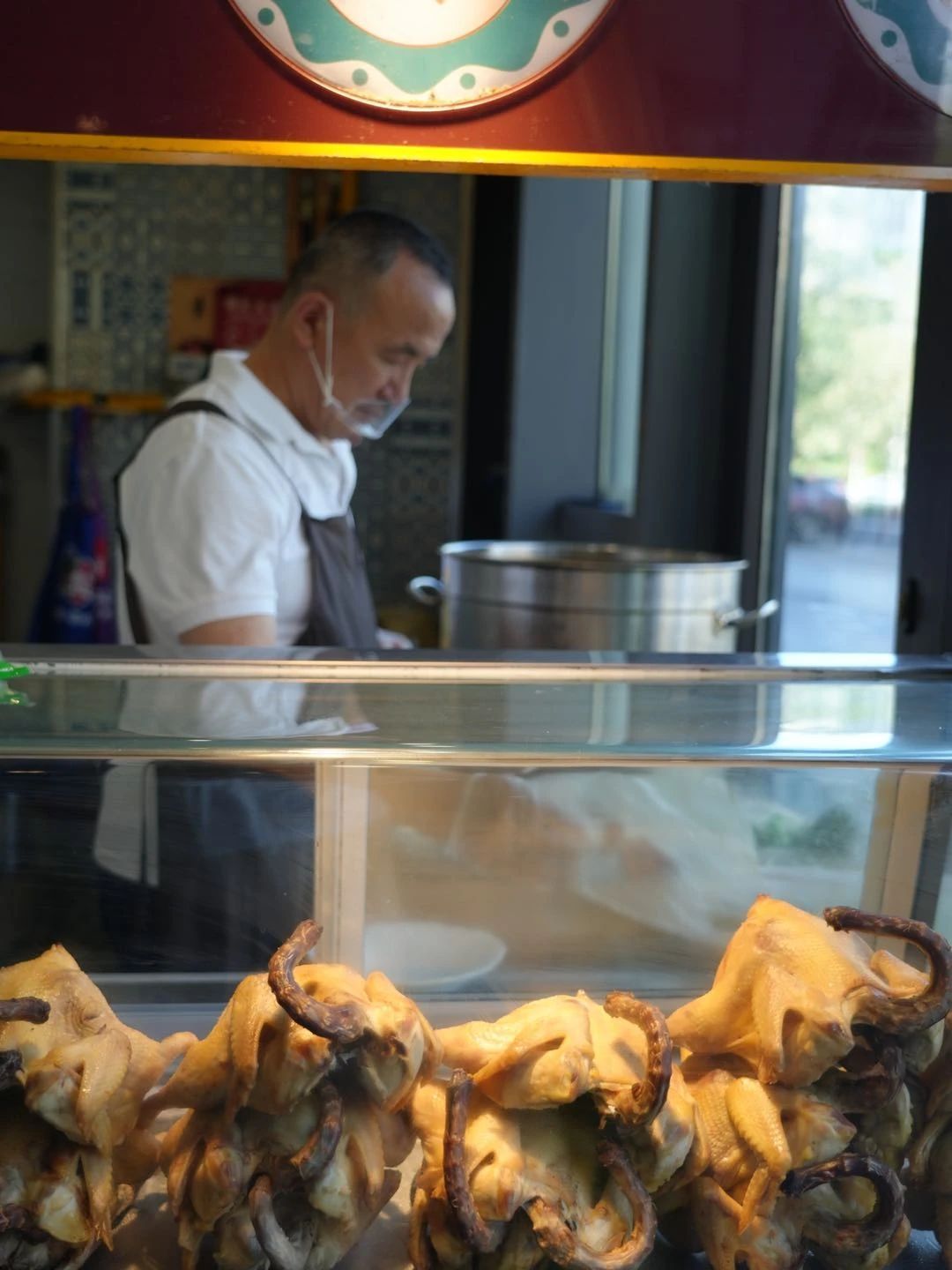 雞皮泛著自然的金黃,老板說秘訣就是:“每天活雞現(xiàn)宰、自熬原湯。”