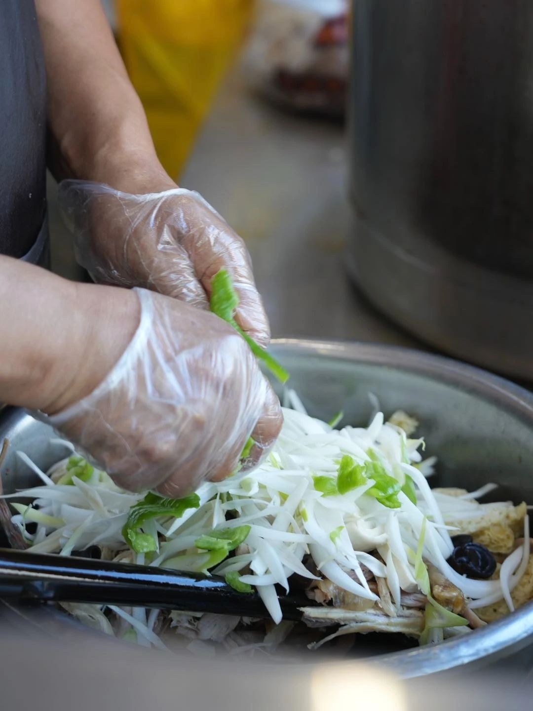 朋友告訴我,從前若是誰家做了九碗三行( hang )子,整條街都得亮堂三分,是待客的“天花板”,“因為這道菜實在是太難做了。”實在好奇,需要親眼嘗嘗,哦不,看看。