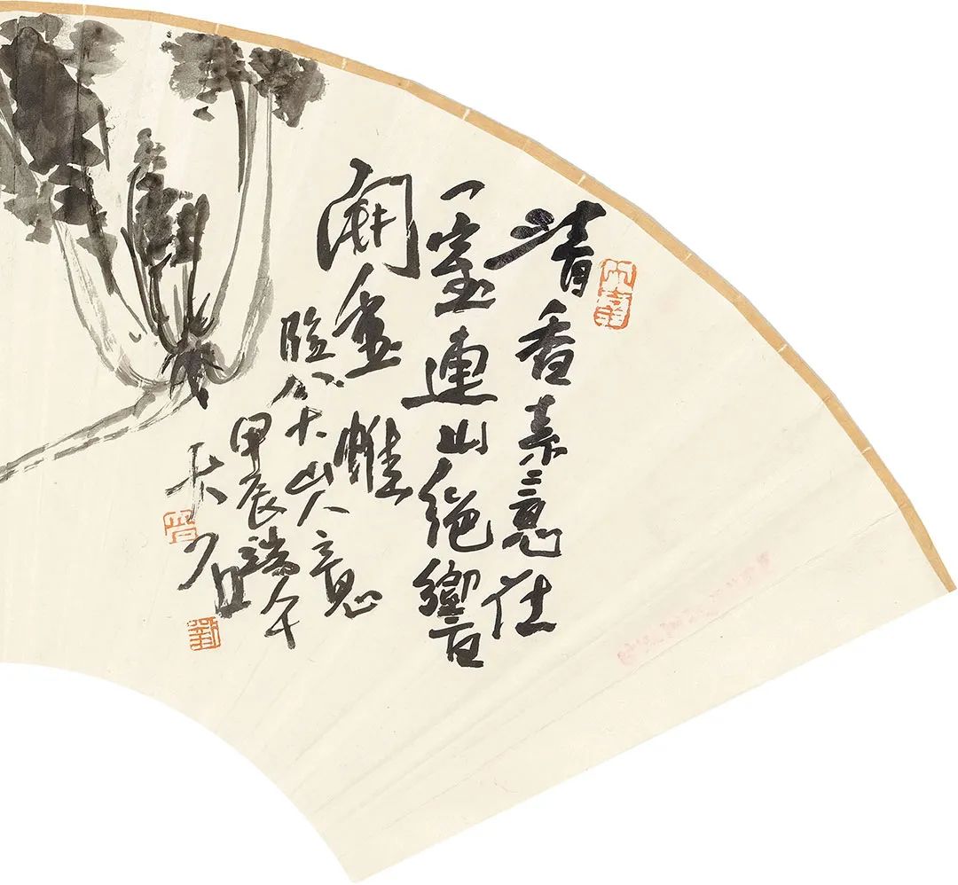 題識(shí):清香素意在一室,連山絕響開(kāi)重帷。臨八大山人意,甲辰端午,大石。