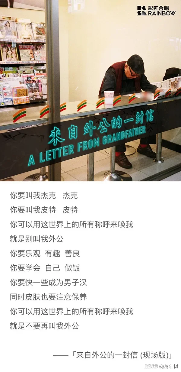 A:經(jīng)常有粉絲在網(wǎng)上說(shuō)“今天我們音樂(lè)老師又放你的作品了”。這會(huì)給我壓力——好好寫(xiě)不要亂來(lái)。一開(kāi)始我們沒(méi)有觀眾,自己唱自己聽(tīng),有了觀眾才有了責(zé)任感,“水平得上來(lái)”。而觀眾更多了之后,我會(huì)想我的音樂(lè)想帶給觀眾什么?大家總結(jié)彩虹的作品,不論哪一種最終都是正向的。不是我不想寫(xiě)負(fù)面,而是最終我希望別人聽(tīng)完音樂(lè)的感受是舒緩的。不一定是喜悅,至少能幫助人疏導(dǎo)情緒。音樂(lè)本來(lái)就有這樣的功能,它會(huì)幫你哭、幫你笑,哭完笑完也就好了,我希望這是彩虹能帶給大家的。