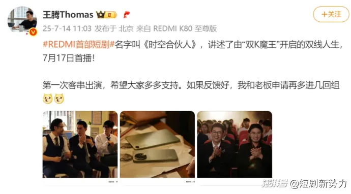 科技大佬“拍劇首秀”,小米REDMI首部短劇《時空合伙人》定檔7月17日