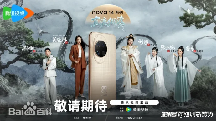 小米的短劇嘗試并非孤例,此前,華為早已在短劇賽道布局,呈現(xiàn)出 “平臺搭建 + 內(nèi)容定制” 的雙軌并行特點。一方面,華為推出 “短劇大全” APP 試水付費模式,通過聚合海量內(nèi)容搭建起短劇平臺生態(tài),為用戶提供豐富的觀看選擇;另一方面,華為旗下產(chǎn)品積極探索定制化內(nèi)容創(chuàng)作,其中 nova 14 系列與騰訊視頻聯(lián)合出品的職場輕喜劇《真渡假渡》,成為品牌借勢短劇破圈的典型案例。