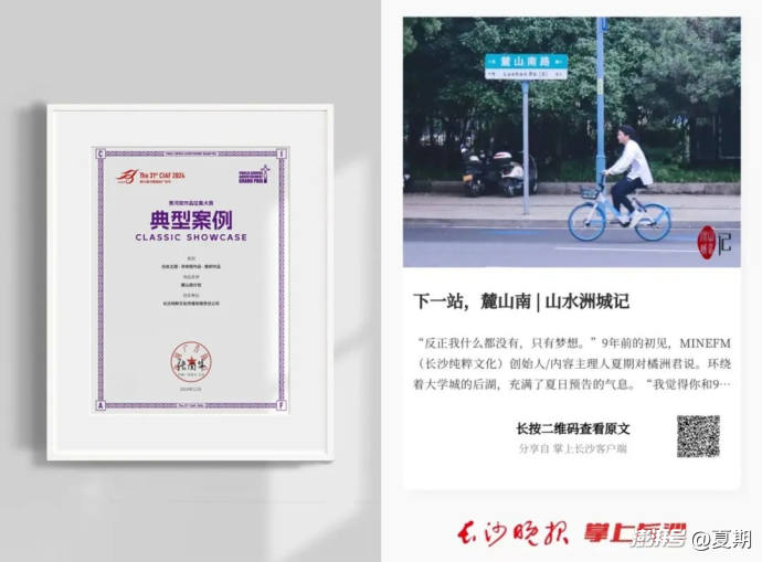 2024年12月,「麓山南計劃」獲評第31屆中國國際廣告節(jié)黃河獎“典型案例”,成為以單一街道敘事入選該獎項的代表項目。