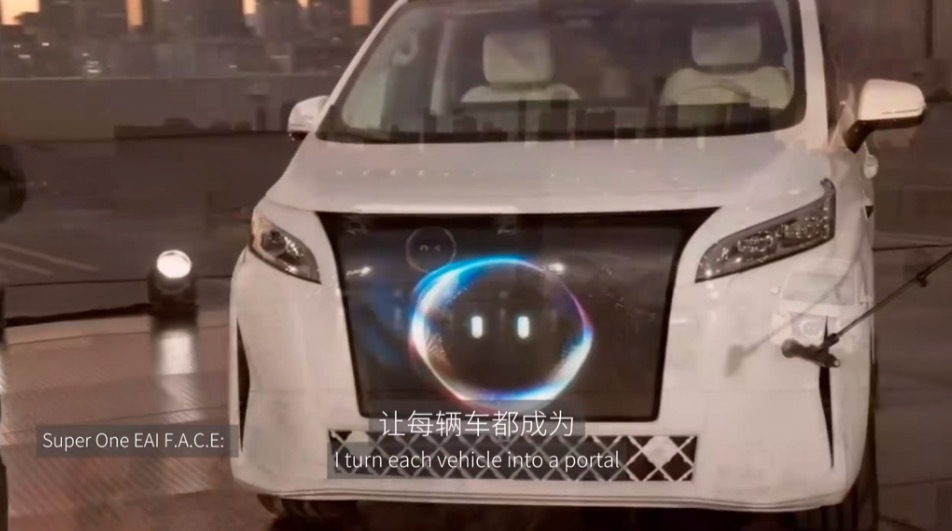 FX Super One緩緩駛上展臺時,最刺眼的不是激光,而是前臉那塊1.5米寬的LED巨屏。官方宣稱它能自定義表情、播放廣告甚至露營電影,試圖重塑“人車交流的語言”。但演示環(huán)節(jié),分辨率不足導致圖案邊緣模糊,切換動畫時卡頓如老舊投影儀。