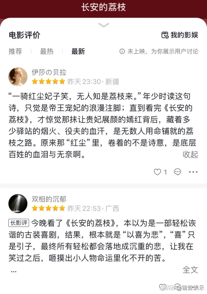 不過(guò),點(diǎn)映階段也有部分影評(píng)人認(rèn)為《長(zhǎng)安的荔枝》不夠優(yōu)秀,原因在于影片所表達(dá)的“興,百姓苦;亡,百姓苦”的內(nèi)核思想,在古代的歷史長(zhǎng)河中已經(jīng)被文人墨客反復(fù)書(shū)寫(xiě),新意欠缺。