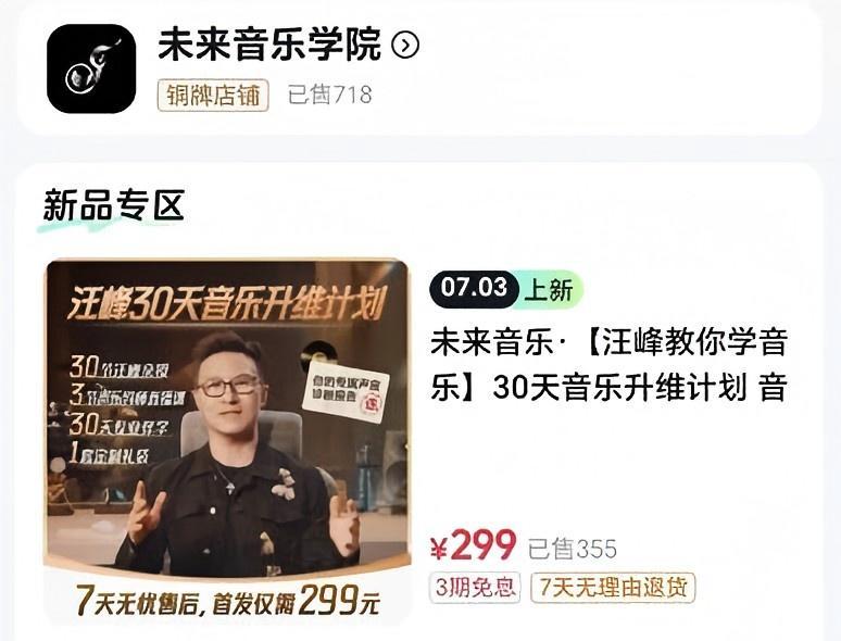 據(jù)悉,汪峰的音樂課在抖音平臺(tái)一家名為“未來音樂學(xué)院”的店鋪售賣。