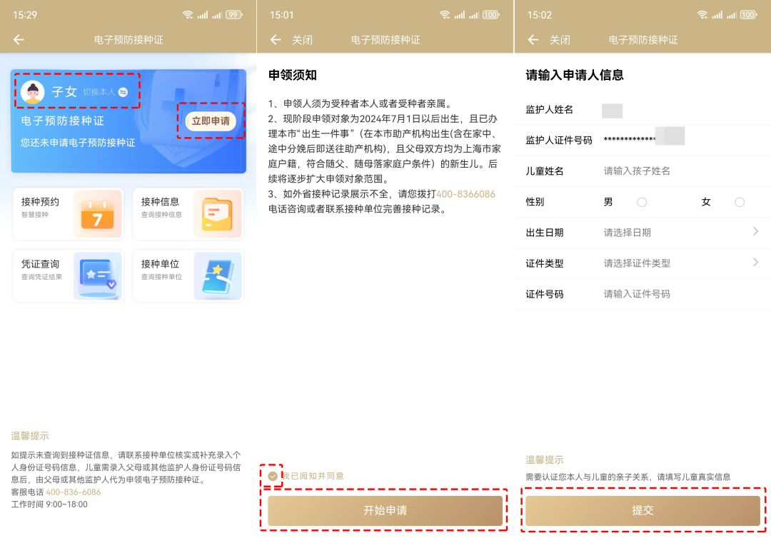 切換到“子女”狀態(tài)→點(diǎn)擊“立即申請”→勾選“我已閱讀并同意”并點(diǎn)擊“開始申請”→填寫孩子信息,并點(diǎn)擊“提交”。