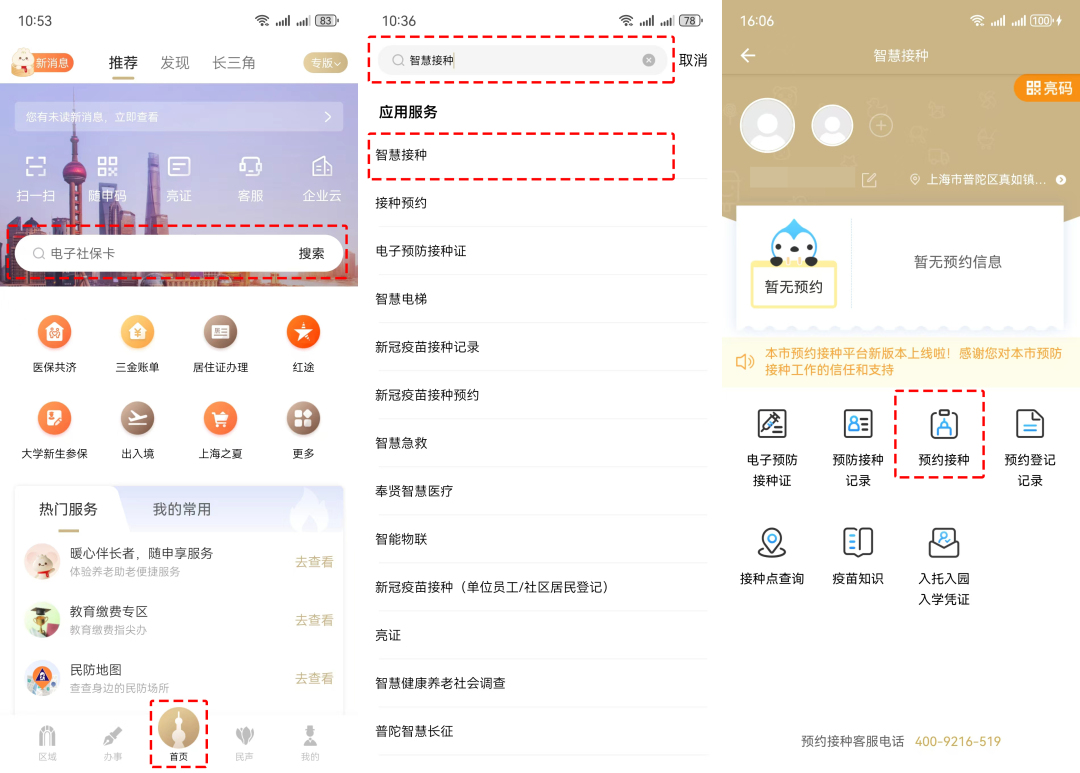 市民朋友可以通過“隨申辦市民云”APP查詢接種門診信息或預(yù)約接種。操作步驟如下↓