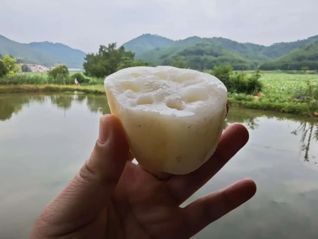 夏季的黃田村和萬洞村,五百畝荷塘碧波蕩漾,荷葉田田如綠毯鋪展,空氣中彌漫著淡淡的荷香。清晨六點,村民們已穿著防水服踏入齊腰深的藕田,熟練地將鮮嫩的蓮藕從淤泥中拔出,裝車運(yùn)往分揀中心。