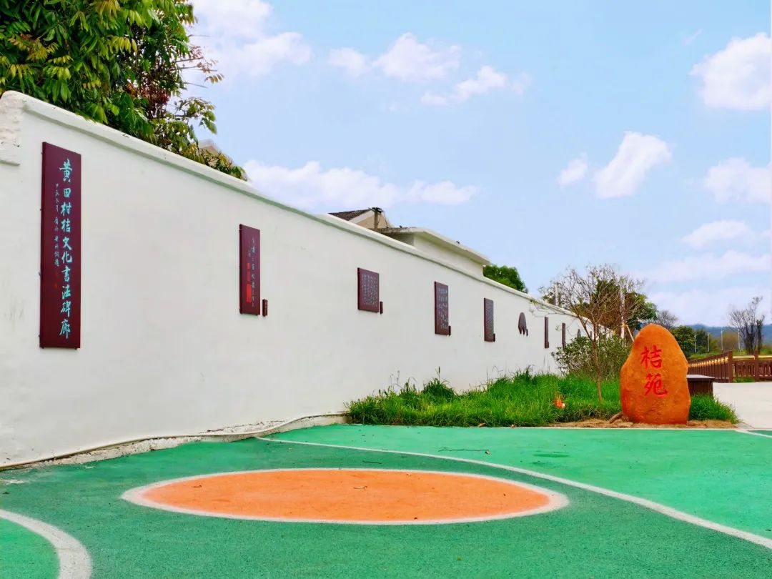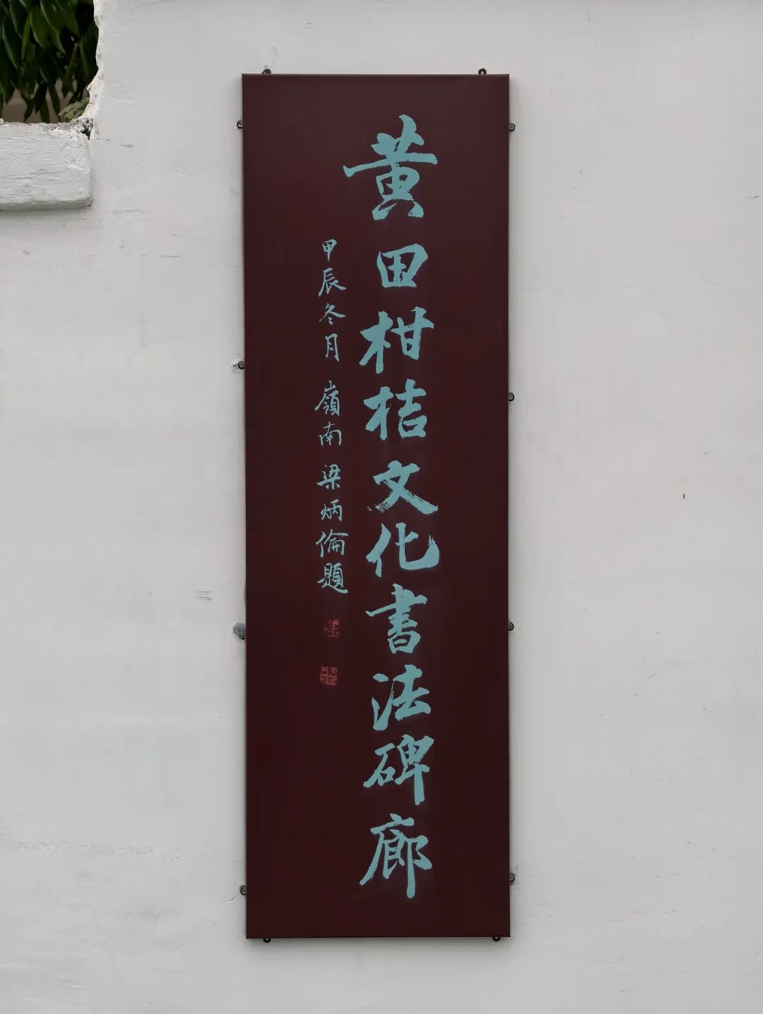 △中國書協(xié)會員、廣東省書協(xié)副主席梁炳倫題寫的“黃田柑桔文化書法碑廊”匾額