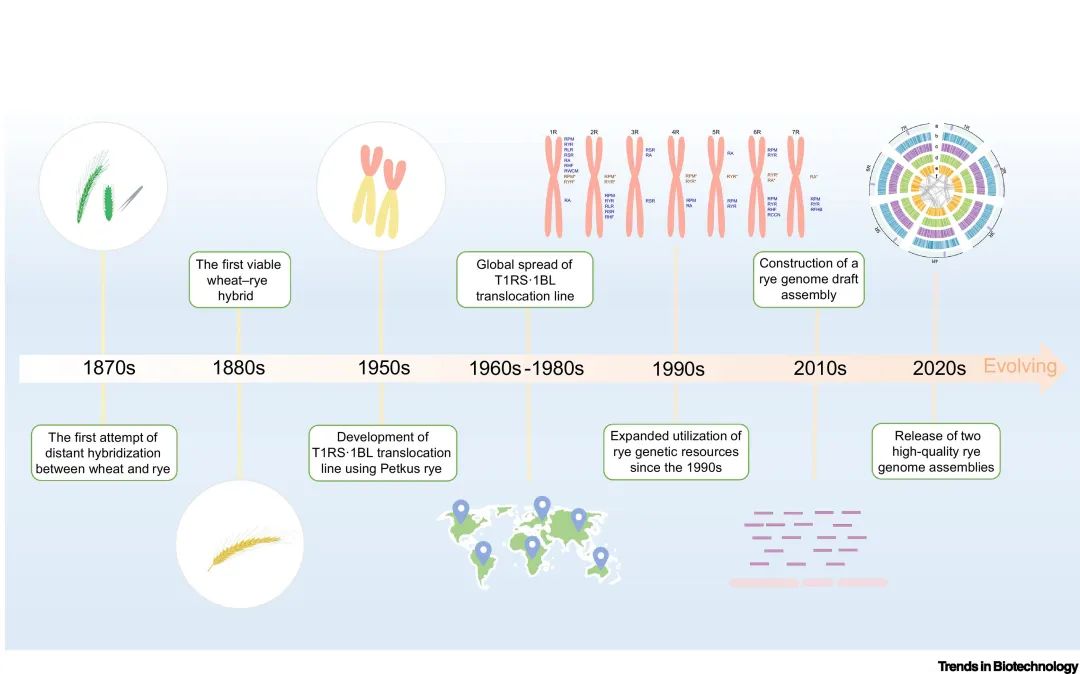 近日,中國科學院遺傳與發(fā)育生物學研究所農業(yè)資源研究中心安調過研究員團隊與崖州灣國家實驗室李立會研究員合作,在Cell Press細胞出版社旗下期刊Trends in Biotechnology發(fā)表綜述“Advancing wheat breeding using rye: a key contribution to wheat breeding history”。文章系統(tǒng)回顧了黑麥在小麥育種中的歷史貢獻,并深入探討了黑麥在現(xiàn)代生物技術、多維組學數(shù)據(jù)融合與人工智能輔助下釋放遺傳潛力的路徑與前景。文章第一作者為韓幗豪副研究員。