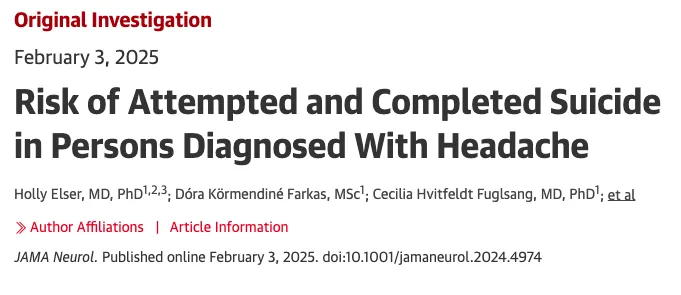2025年2月3日,一項(xiàng)發(fā)表在《JAMA Neurology》上的新研究表明,頭痛和偏頭痛,包括即使是輕微的緊張型頭痛,都會(huì)增加自殺的風(fēng)險(xiǎn)。