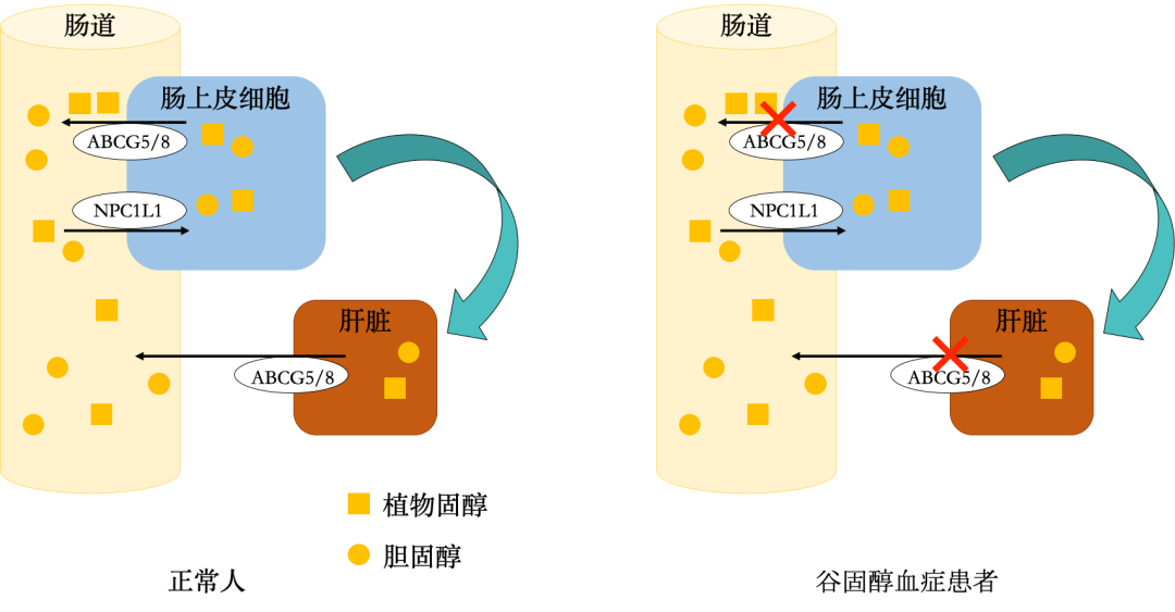 正常人吃進(jìn)去的植物油、堅(jiān)果等食物里含有“植物固醇”。我們身體本來(lái)會(huì)把這些東西排出去,但小凱因?yàn)橐粋€(gè)基因突變(ABCG5/ABCG8),無(wú)法有效排出這些植物固醇,結(jié)果它們就像“垃圾”一樣堆在了血液和組織里,搞得身體一團(tuán)糟!