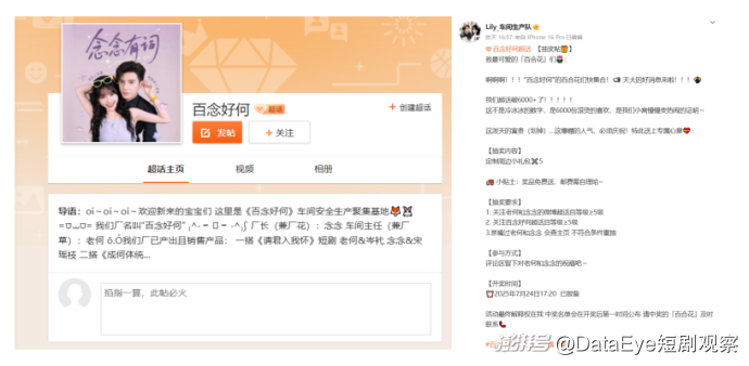 7月22日,紅果短劇官方微博也發(fā)布了某微短劇線(xiàn)下驚喜活動(dòng)的海報(bào),而根據(jù)7月23日最新公布的海報(bào)該微短劇為《念念有詞》,評(píng)論區(qū)也引來(lái)大批“百念好何”粉絲的評(píng)論互動(dòng)。