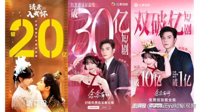 而從紅果超10億的微短劇來(lái)看,表現(xiàn)較為出色的也是何聰睿與劉念的組合,有兩部微短劇播放破20億!
