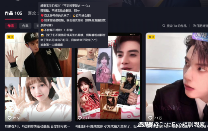 一方面是,微短劇演員的話(huà)語(yǔ)自由度會(huì)更高,更樂(lè)于通過(guò)社交平臺(tái)的互動(dòng)來(lái)向觀(guān)眾展現(xiàn)自己“活人感”的一面,通過(guò)直播互動(dòng)等方式拉近自己與觀(guān)眾的關(guān)系,來(lái)達(dá)到劇宣的效果。