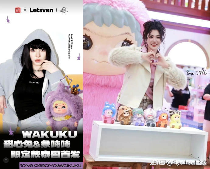 在營(yíng)銷策略上,WAKUKU高度借鑒了LABUBU的走紅之路,巧妙融合了名人效應(yīng)與粉絲經(jīng)濟(jì),火速實(shí)現(xiàn)曝光。