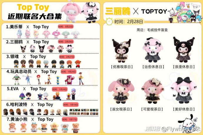 TOP TOY近期聯(lián)名,均為熱度較高的IP 圖源:小紅書@阿貍聯(lián)名研究所