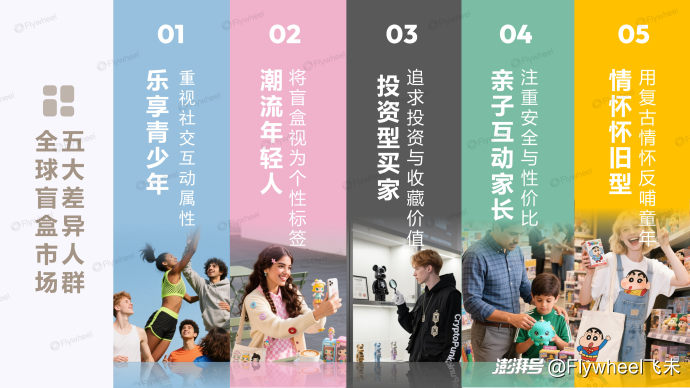 基于此,我們將消費(fèi)人群分成了五類,分別是:樂享青少年、潮流年輕人、投資型買家、親子互動(dòng)家長(zhǎng)、情懷懷舊型消費(fèi)者。